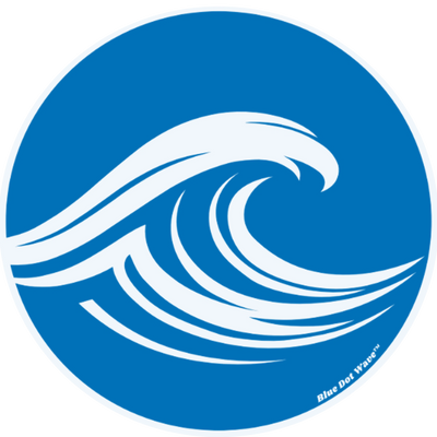 2026: The Blue Dot story continues with the launch of the Blue Dot Wave™. With a united mission to deliver a massive blue wave across the country, the iconic Blue Dot has merged with a wave. This new image conveys the message that working together we will achieve a nationwide Blue Wave in 2026!