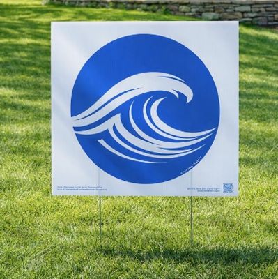 Signs are placed under security cameras for pick up. We're requesting a $10 donation/sign to help cover costs of signs and Blue Dot Wave events. If you're able to "pay it forward" with a larger donation to help get more signs out to more places, we'll put every penny to good use.